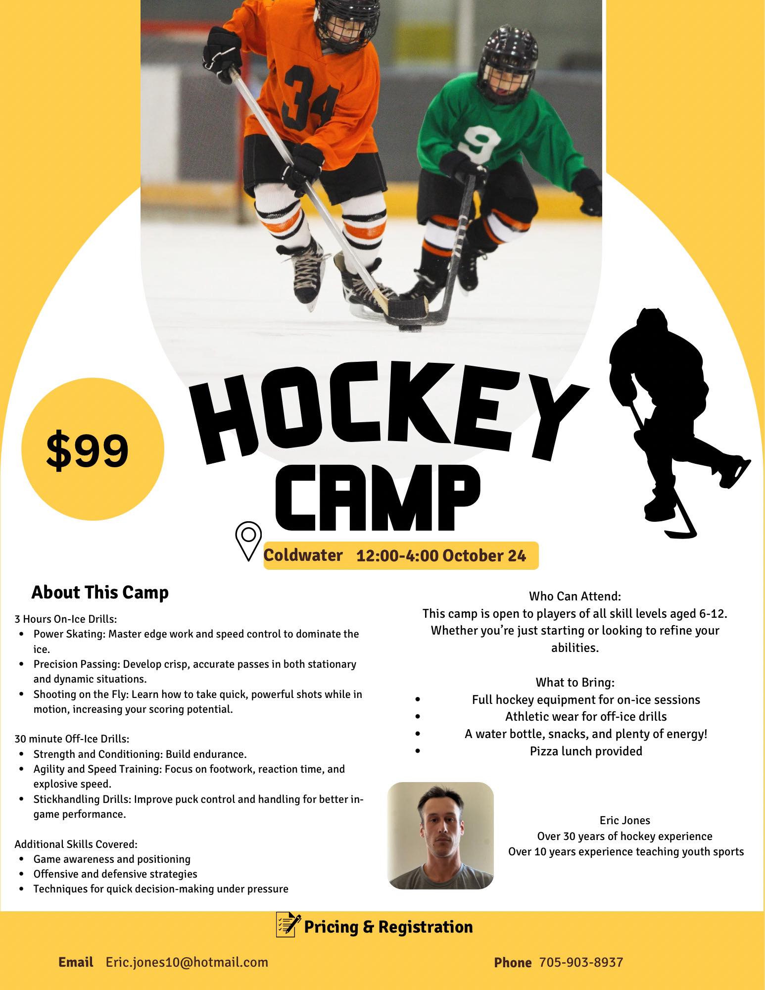 The camp is $99 and is led and organized by Eric Jones, who has over 30 years of hockey experience and more than 10 years of experience coaching youth sports.
